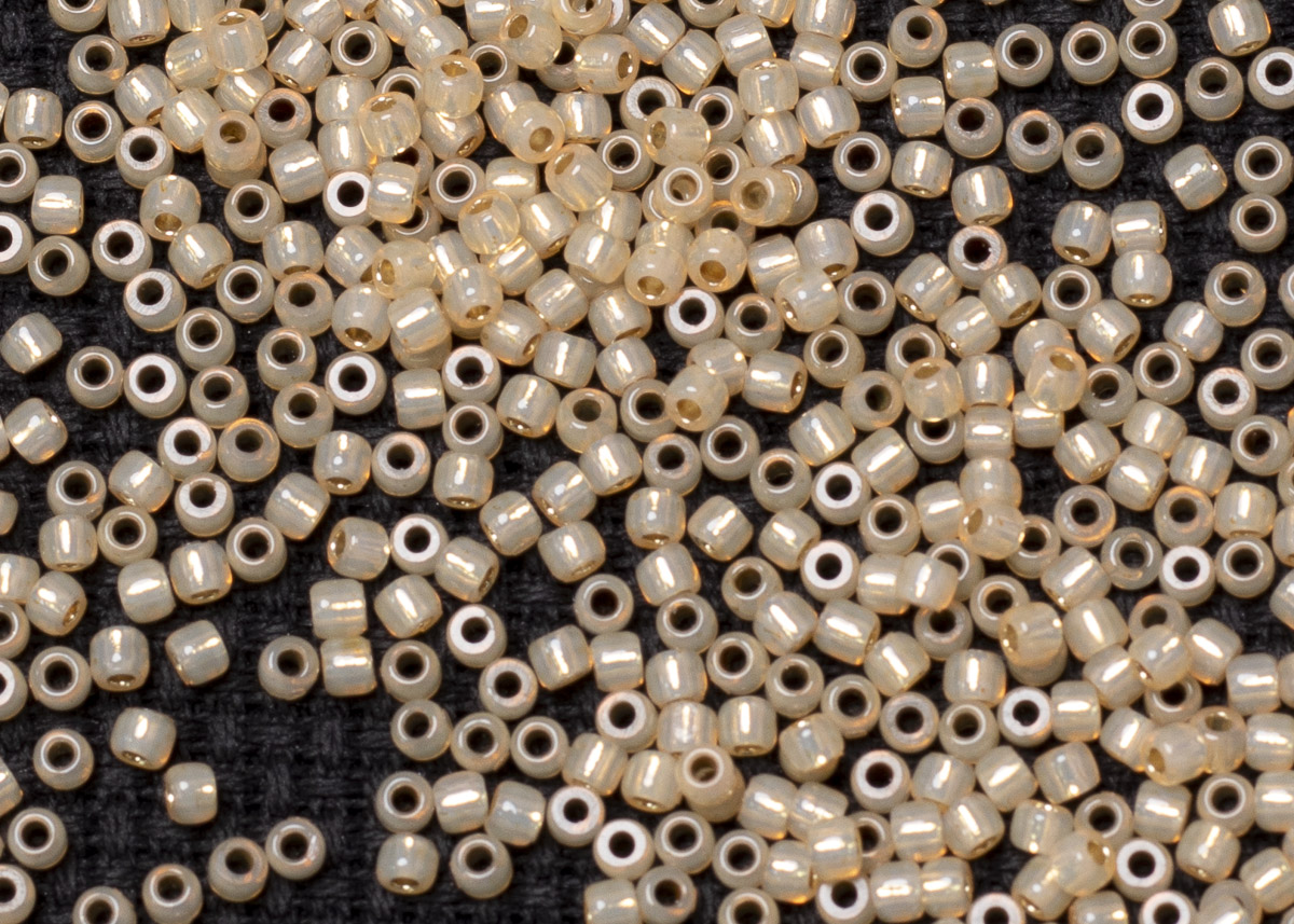 Бисер Япония круглый 11/0 10 г PF2110 молочный светлый топаз, серебряная линия внутри